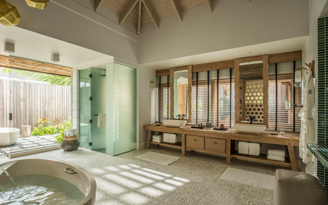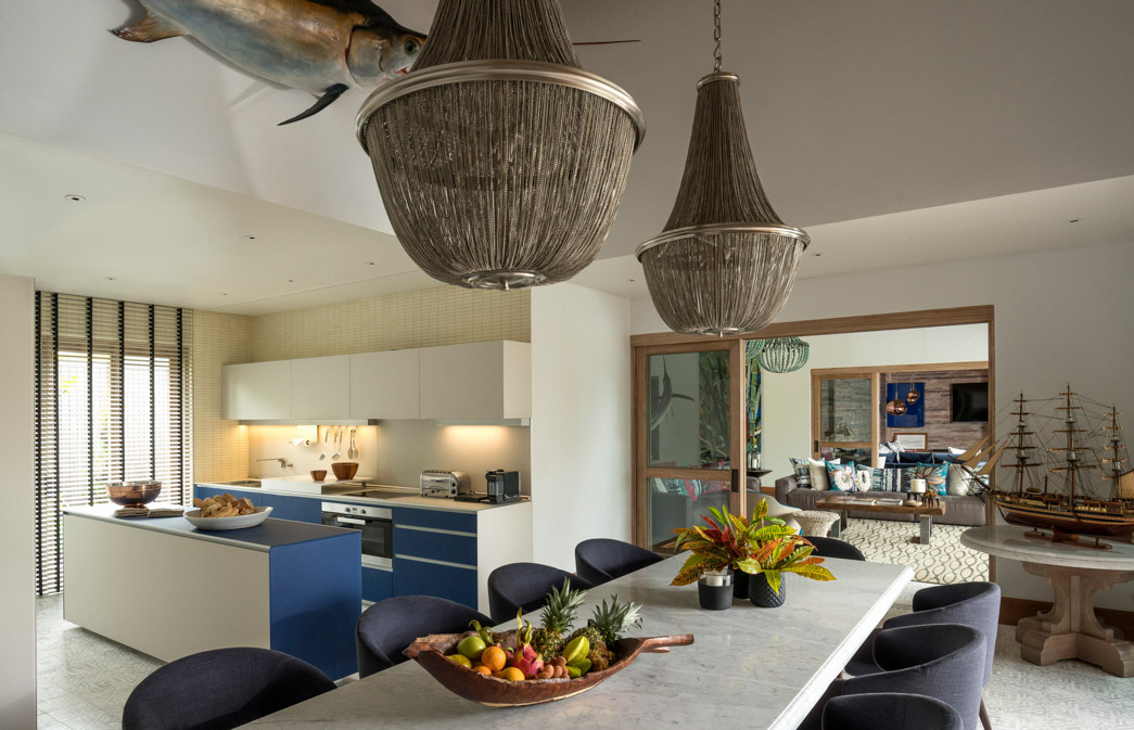In this presidential villa, you get an outdoor living area with a private pool and three spacious bedrooms with two king beds, a queen bed and a double sofa bed. Enjoy luxurious facilities in the villa such as big bathrooms with a freestanding stone bathtub, double vanity, and a facility of a separate outdoor shower. Full-time wifi and a private gym are available too. There is a fully-equipped kitchen and dining area with a private barbeque facility. Also, a chef is available on request.