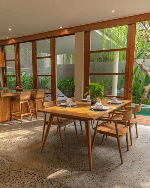 - Salle à manger intérieure avec bar de cuisine
