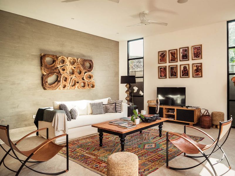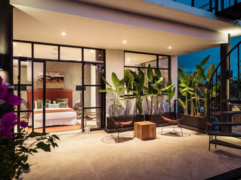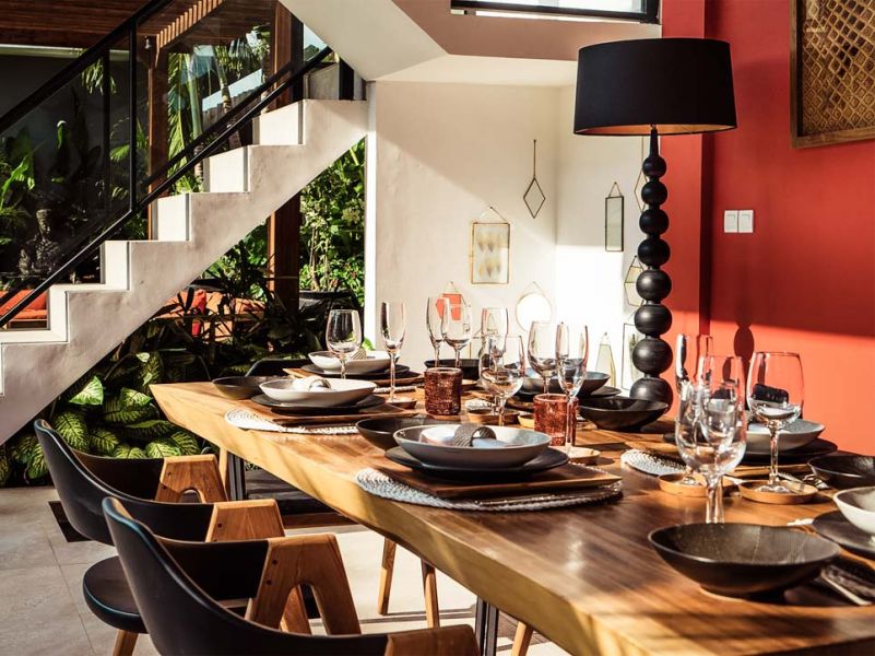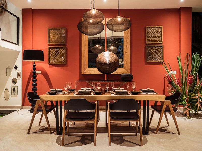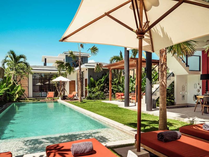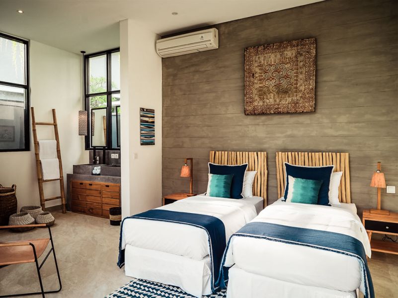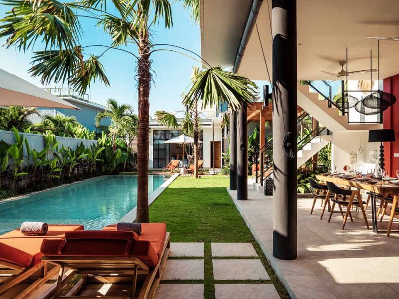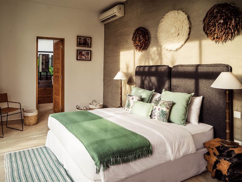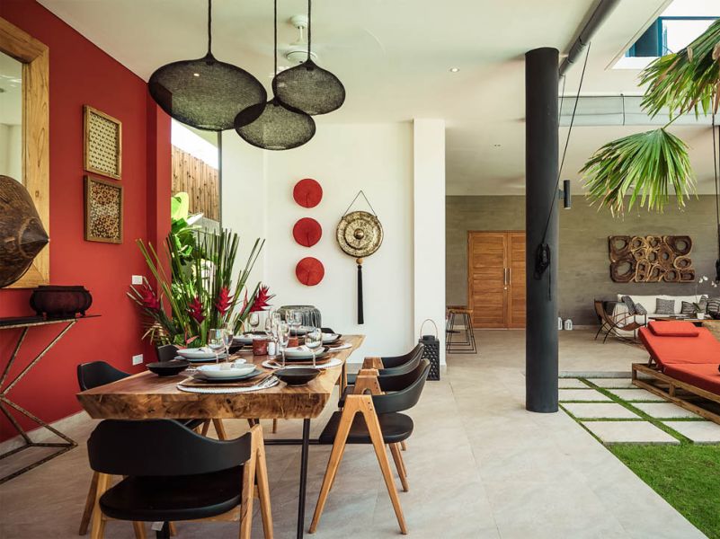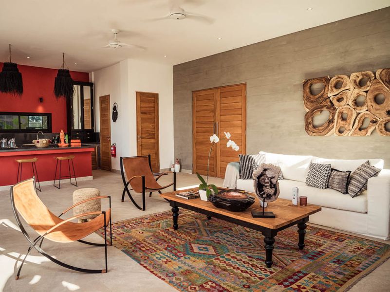 Cette villa de trois chambres est moderne et pleine de caractère. Elle dispose d’un espace de vie fermé aux couleurs vives et à la décoration tropicale, apportant une touche de fraîcheur et de zen à l’endroit.