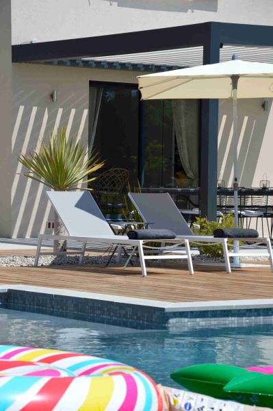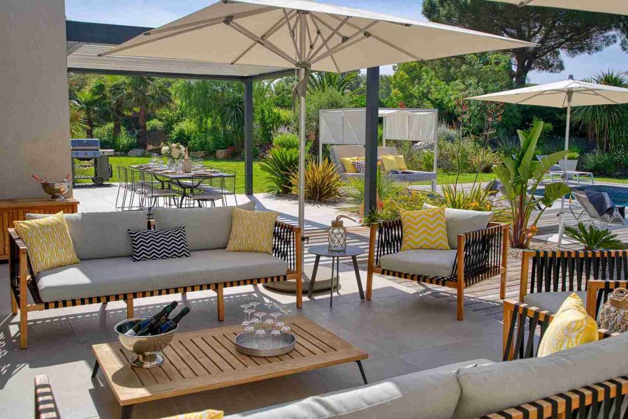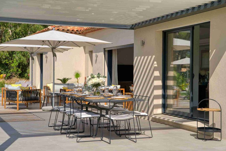 - Équipements extérieurs tels que piscine, coin repas et barbecue