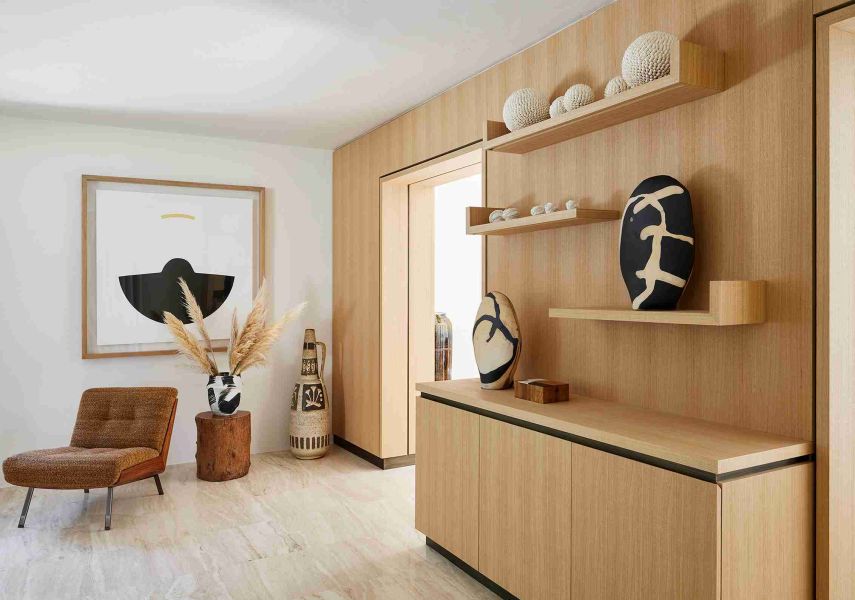 Les espaces intérieurs sont tout aussi impressionnants, avec un agencement ouvert reliant la cuisine, la salle à manger et le salon. De grandes baies vitrées offrent une vue imprenable sur la verdure environnante, inondant la maison de lumière naturelle et créant une parfaite harmonie entre intérieur et extérieur.