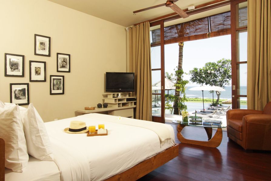 - Chambre 3 : 1 lit king-size avec vue sur la piscine et la plage ; salle de bain avec baignoire intérieure et douche à effet de pluie intérieure.