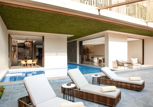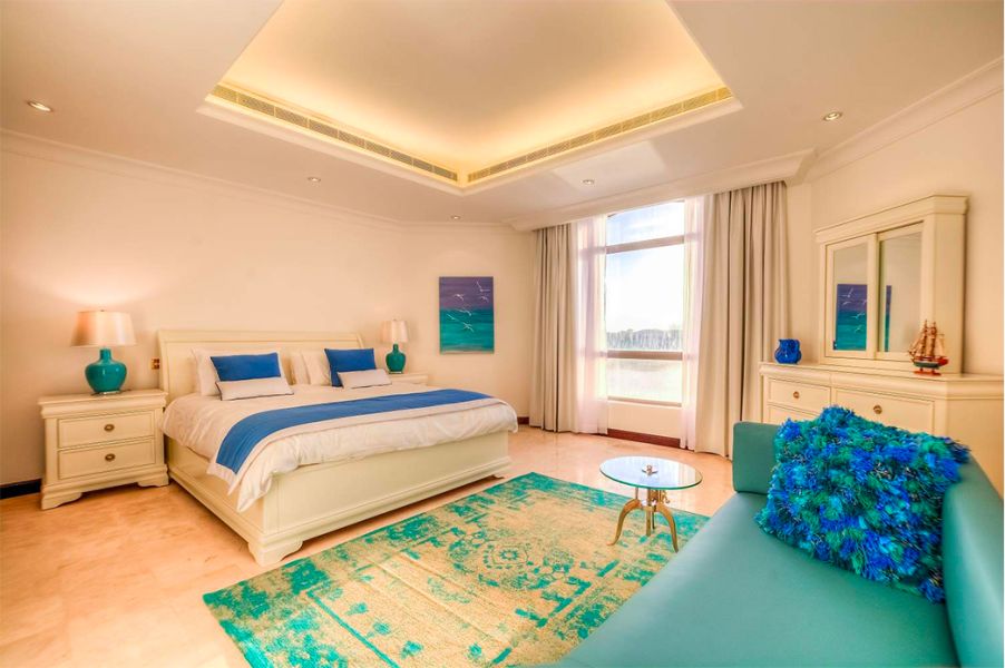 Outside, enjoy sun-soaked terraces with views of Atlantis, direct beach access, a charming green garden, a dedicated shisha area, and your own private pool.