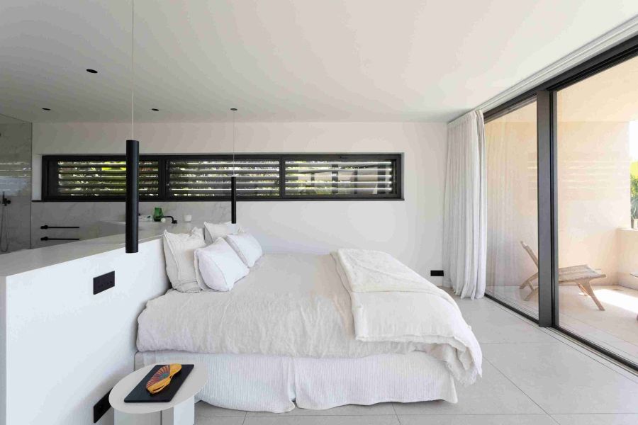 Each bedroom is beautifully furnished with comfortable beds, air conditioning, and its own en-suite bathroom. The open living and dining area includes a fully equipped kitchen, smart TV, and plenty of space to relax together. Large windows bring in natural light and offer lovely views of the garden and pool. Soft lighting, neutral tones, and quality finishes create a warm and welcoming atmosphere throughout.